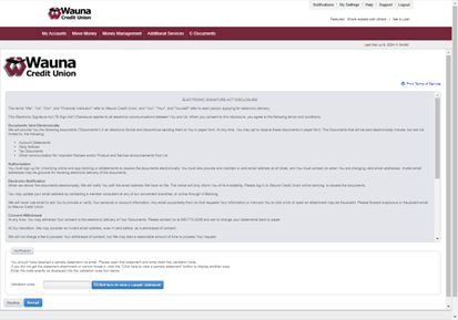 - Review the Electronic Signature Act Disclosure.